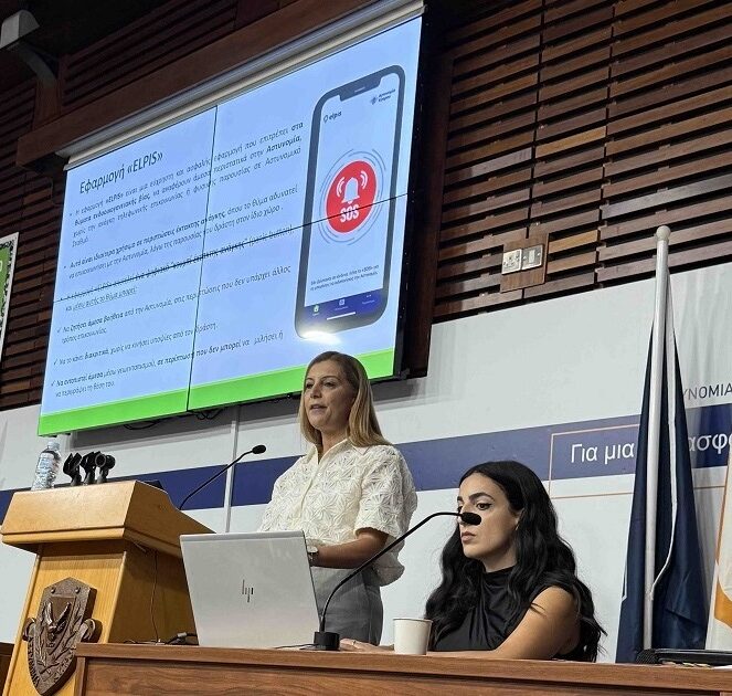 Την εφαρμογή άμεσης βοήθειας των θυμάτων ενδοοικογενειακής βίας «ELPIS», η οποία τέθηκε σε λειτουργία σήμερα Δευτέρα, 14 Ιουλίου, 2025, παρουσίασαν το Υπουργείο Δικαιοσύνης και Δημόσιας Τάξης και η Αστυνομία Κύπρου, σε δημοσιογραφική διάσκεψη που παρέθεσαν το πρωί της Δευτέρας, στη Λευκωσία.