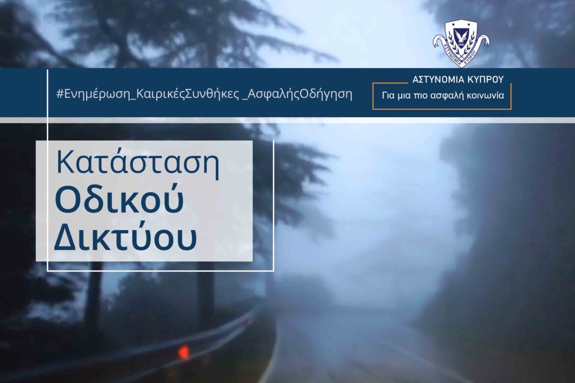 Οι δρόμοι στο Τρόοδος είναι ανοικτοί για όλα τα οχήματα, ωστόσο λόγω της έντονης βροχόπτωσης και της πυκνής ομίχλης που επικρατεί, οι δρόμοι είναι ολισθηροί και η ορατότητα είναι επικίνδυνα περιορισμένη.