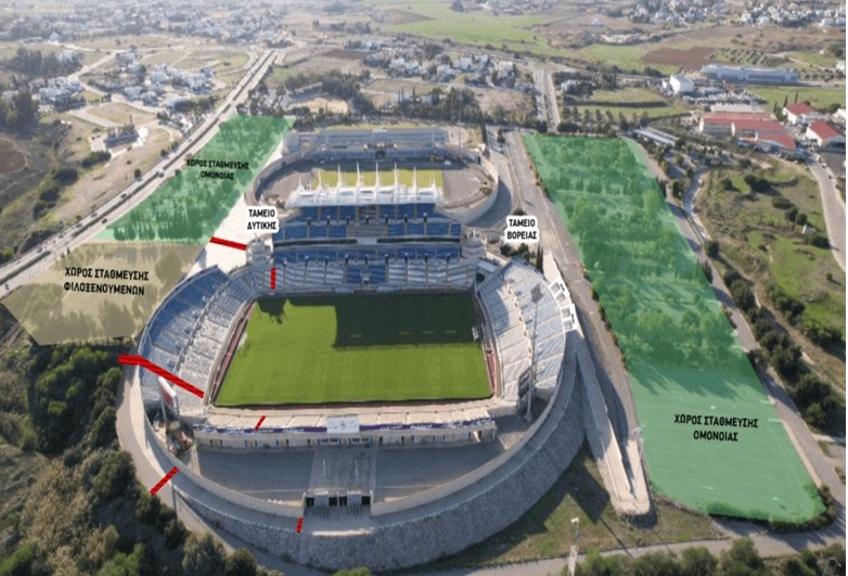 Οι φίλαθλοι της ΟΜΟΝΟΙΑΣ θα καταλάβουν τις Δυτικές, Βόρειες και Ανατολικές κερκίδες του Σταδίου, ως εκ τούτου, προτρέπονται να κατευθυνθούν στο Στάδιο μέσω της Λεωφόρου Σπύρου Κυπριανού και των Φώτων Τροχαίας Ορφανίδη. Να σταθμεύσουν τα οχήματα τους στον Δυτικό και στον Βόρειο χώρο στάθμευσης οχημάτων.