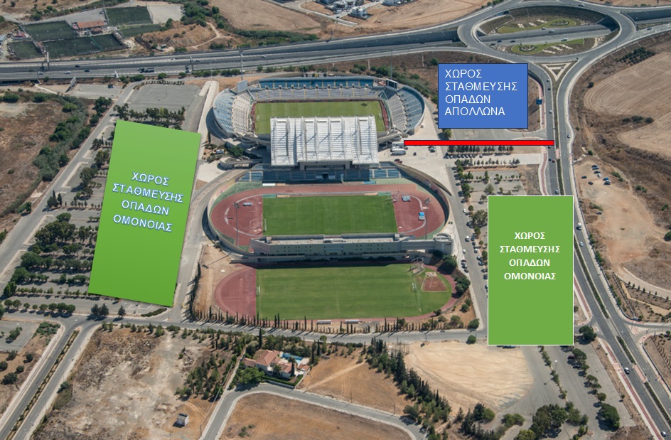 Σημειώνεται ότι η στάθμευση των οχημάτων στον νέο κυκλικό κόμβο του αυτοκινητόδρομου Λευκωσίας-Λεμεσού παρά το στάδιο ΓΣΠ και στα ερείσματα των δρόμων στην περιοχή του σταδίου, απαγορεύεται και οι παραβάτες θα καταγγέλλονται.